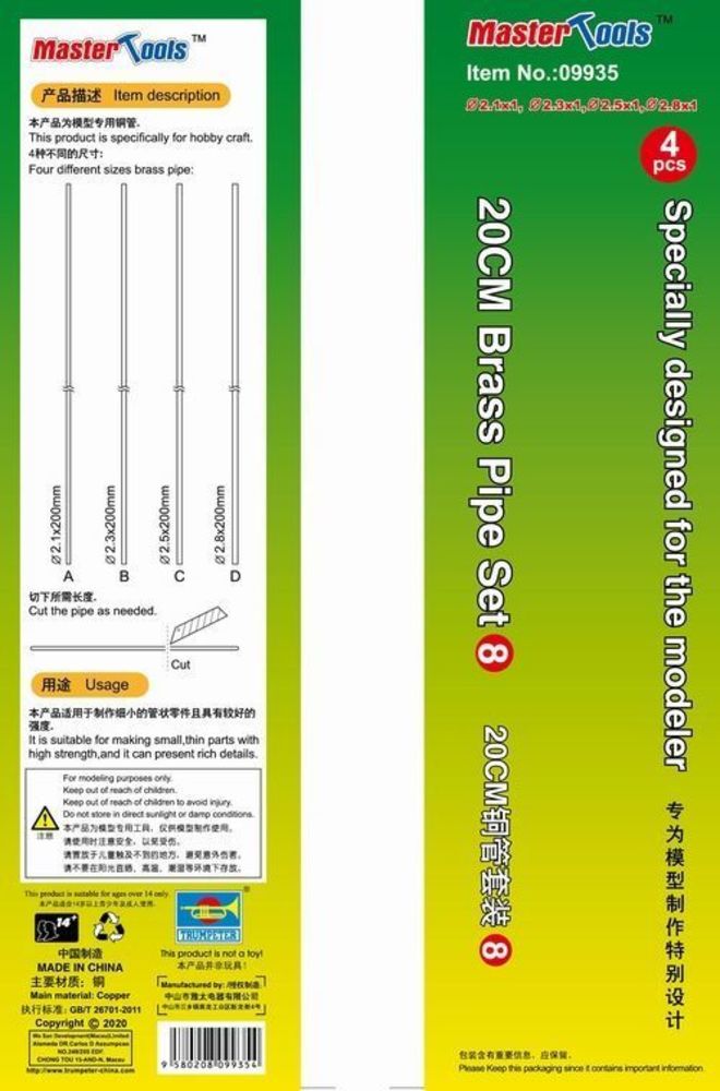20CM Brass Pipe Set 8Productspecificaties