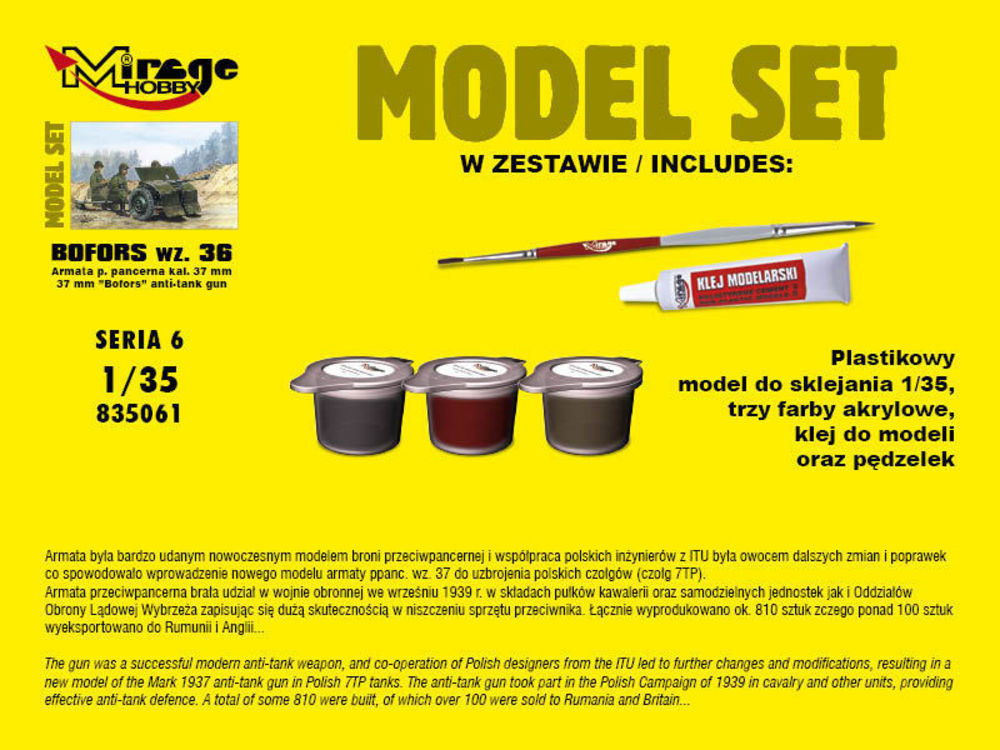 37mm BOFORS wz 36 anti tank gun(ModelSetProductspecificaties