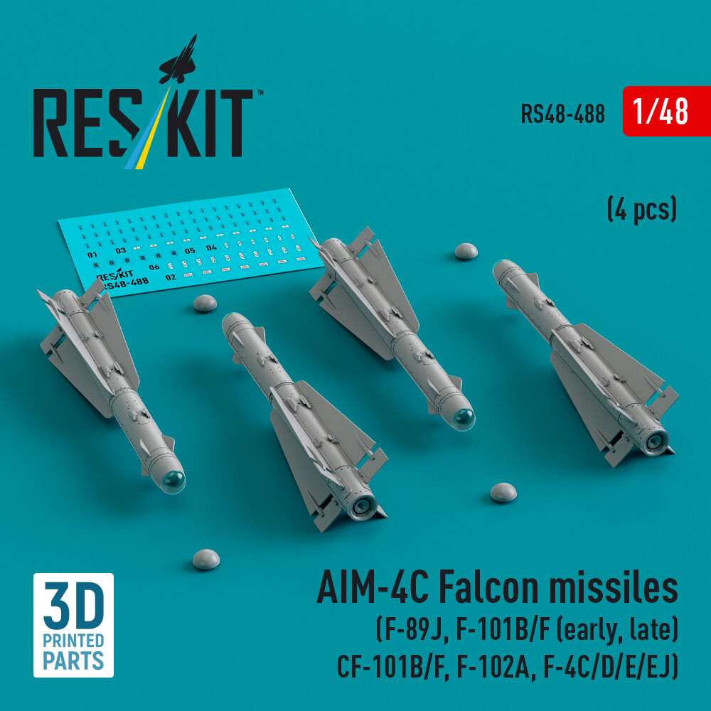 AIM-4C Falcon missiles (F-89J, F-101B/F (early, late), CF-101B/F, F-102A, F-4C/D/E/EJ) (4 pcs) (3D Printed)Productspecificaties