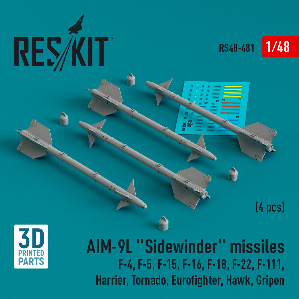 AIM-9L Sidewinder missiles (4 pcs) (F-4, F-5, F-15, F-16, F-18, F-22, F-111, Harrier, Tornado, Eurofighter, Hawk, Gripen) (3D Printed)Productspecificaties