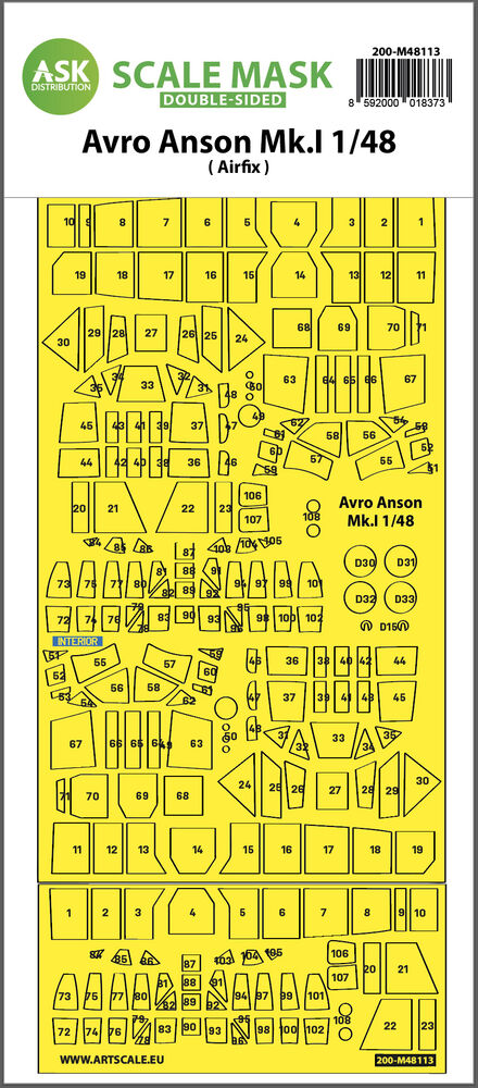 Avro Anson Mk.I double-sided express mask, self-adhesive and pre-cutted for AirfixProductspecificaties