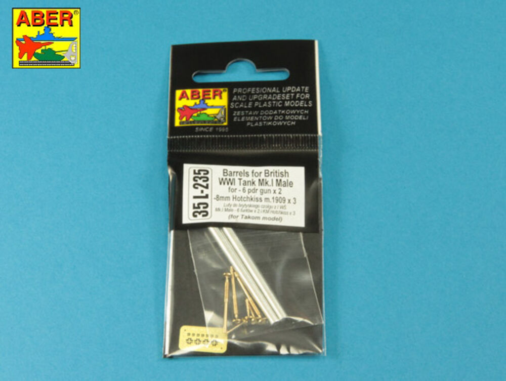 Barrels for British WWI Tank Mk.I Male - 6 pdr. gun x 2 & 8mm Hotchkiss m.1909 x 3Productspecificaties
