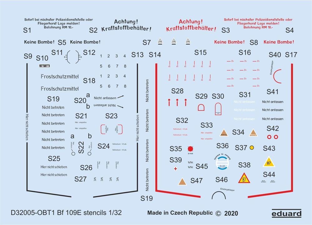 Bf 109E stencils for EduardProductspecificaties
