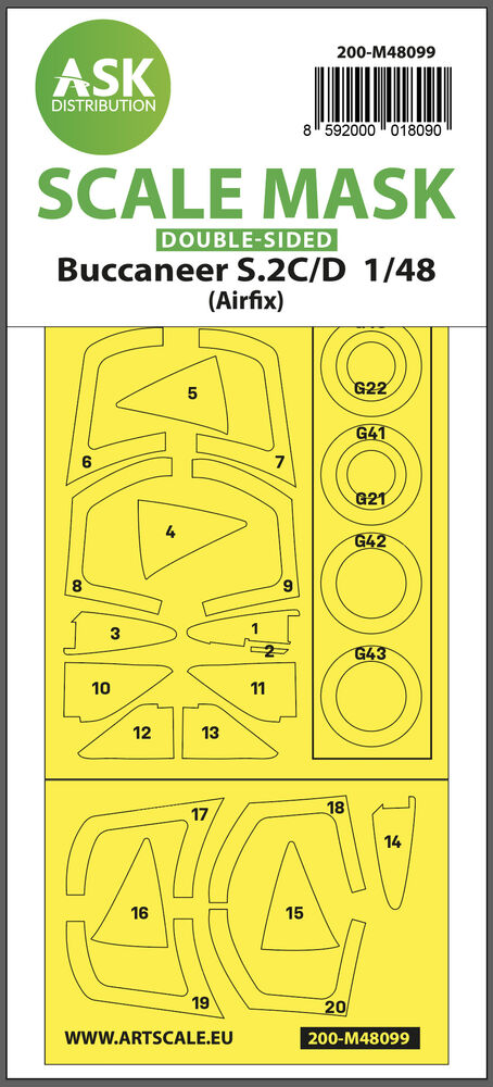 Buccaneer S.2C/D double-sided mask self-adhesive, pre-cutted for AirfixProductspecificaties