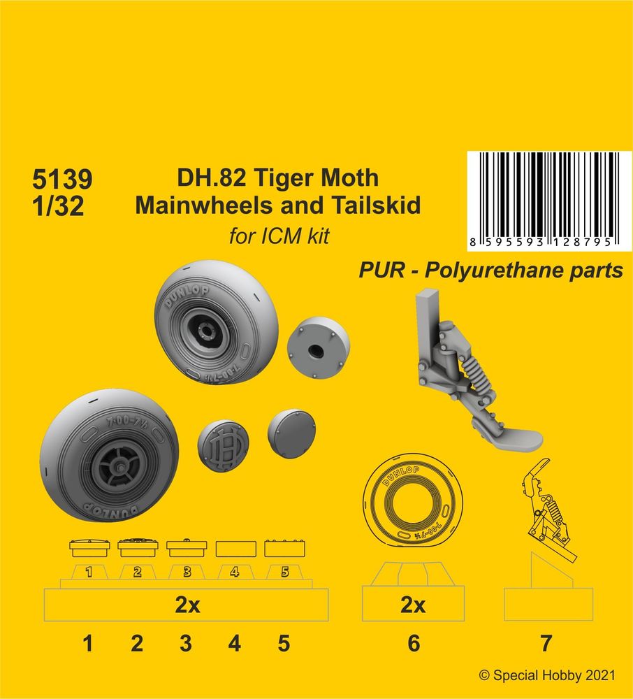 DH.82 Tiger Moth Mainwheels and Tailskid (ICM kit)Productspecificaties