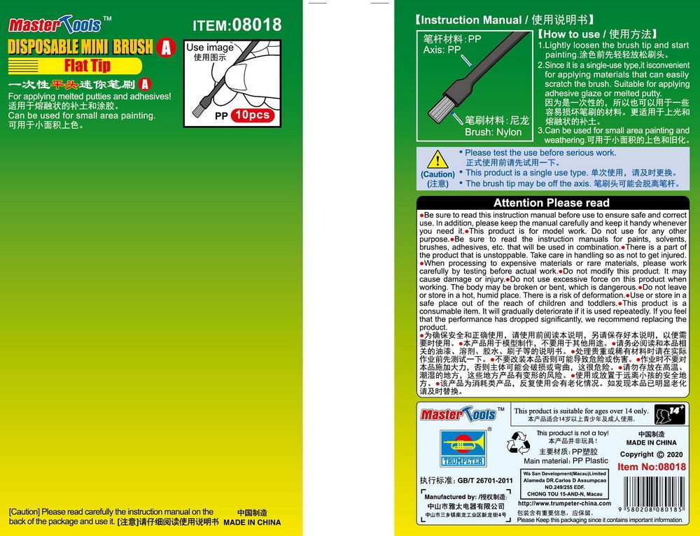 Disposable Mini Flat Brush, 10 pcsProductspecificaties