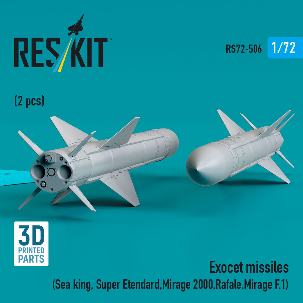 Exocet missiles (2 pcs) (Sea King, Super Etendard, Mirage 2000, Rafale, Mirage F.1) (3D Printed)Productspecificaties