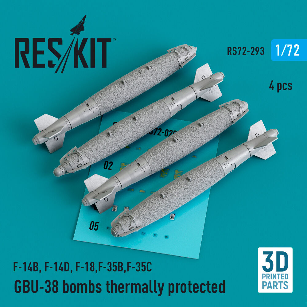 GBU-38 bombs thermally protected (4 pcs) (F-14B, F-14D, F-18,F-35B,F-35C) (3D Printed)Productspecificaties