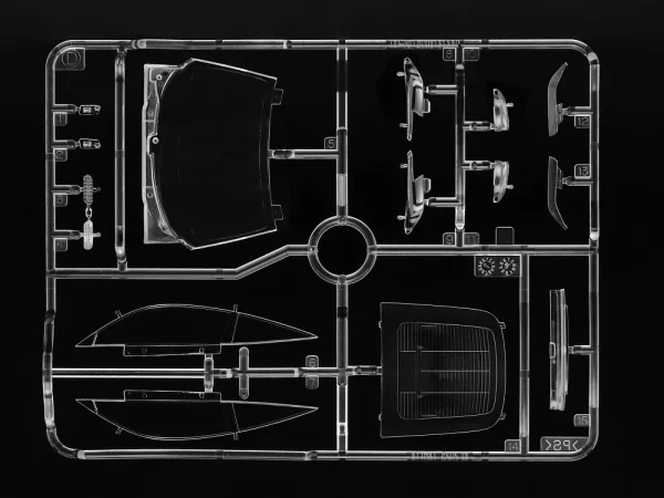 De stoelen bestaan uit meerdere delen, wat het schilderen en afwerken vereenvoudigt en zorgt voor strakke overgangen. De achterbank is na montage inklapbaar, waardoor de functionaliteit van de echte auto overtuigend wordt weergegeven. De achterklep kan geopend worden en wordt ondersteund door realistisch vormgegeven demperstang-onderdelen.