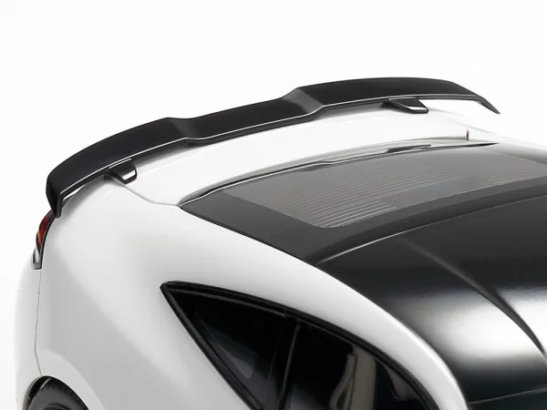 Aan de achterzijde is de Honda Access optionele spoiler meegegoten. Deze subtiele toevoeging benadrukt het sportieve karakter zonder het elegante lijnenspel te verstoren. De banden zijn uitgevoerd in massief synthetisch rubber en zorgen voor een realistische stand van het model. De onderdelenindeling en kleurkeuze zijn bewust zo ontworpen dat het maskeren tijdens het schilderen eenvoudiger wordt, ook bij tweekleurige uitvoeringen.