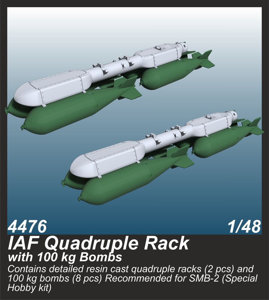 IAF Quadruple Rack with 100 kg Bombs (2 pcs.) / for SMB-2, Sa´ar and Mirage III kitsProductspecificaties