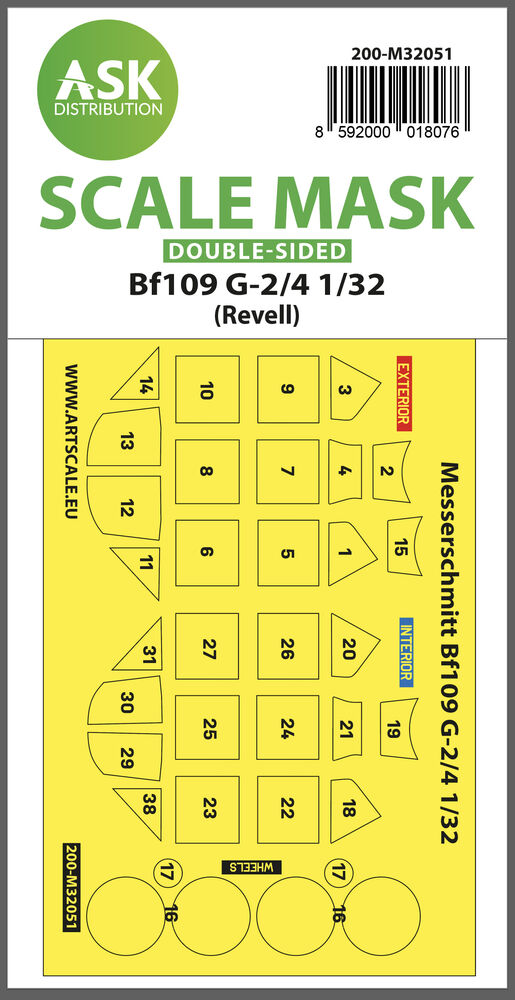 Messerschmitt Bf 109G-2/G-4 double-sided express masks for RevellProductspecificaties