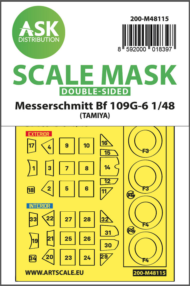 Messerschmitt Bf 109G-6 double-sided express mask, self-adhesive and pre-cutted for TamiyaProductspecificaties