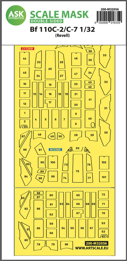 Messerschmitt Bf 110C-2/C-7 double-sided express masks for RevellProductspecificaties