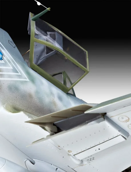 De vleugelwortels en onderzijde van de romp bevatten subtiele paneellijnen die bij correcte verfafwerking extra diepte geven. Door lichte contrastaccenten aan te brengen langs deze lijnen ontstaat een realistischer schaalbeeld zonder overdreven verwering.