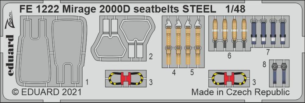 Mirage 2000D seatbelts STEEL 1/48 KINETICProductspecificaties