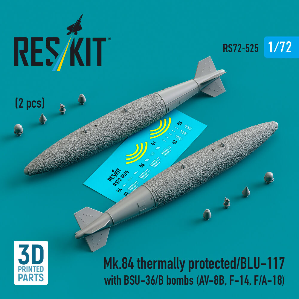 Mk.84 thermally protected/BLU-117 with BSU-36/B bombs (2 pcs) (AV-8B, F-14, F/A-18) (3D Printed)Productspecificaties