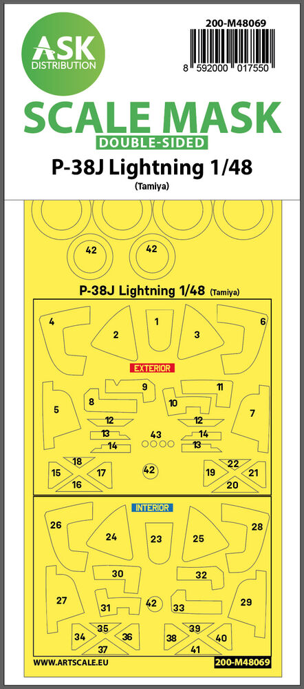 P-38J Lightning double-sided mask for TamiyaProductspecificaties