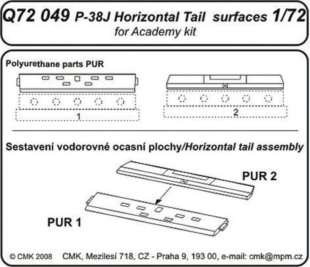 P-38J Lightning Tail horizontal surfaces für Academy BausatzProductspecificaties