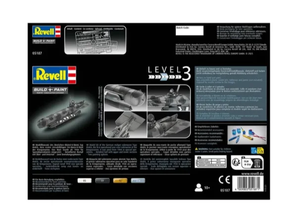 De schaal 1:72 versie van Revell brengt deze technische innovatie tot in de kleinste details tot leven. Elk onderdeel is zorgvuldig ontworpen voor een realistische weergave van het originele materiaal. De romp heeft authentieke lasnaden, de torpedobevestigingen zijn natuurgetrouw gereproduceerd en zelfs de periscoop is tot in detail weergegeven.