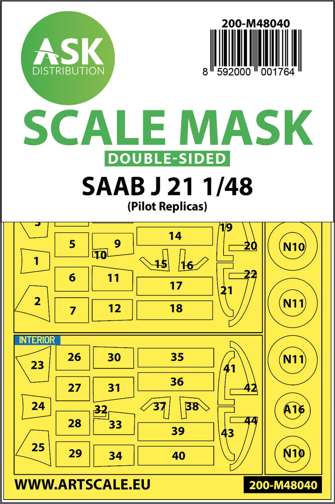 SAAB J21 double-sided painting mask for Pilot ReplicasProductspecificaties