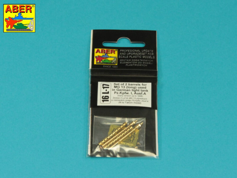 Set of 2 barrels for guns MG13 (long) used in German light tank Pz.Kpfw. I, Ausf.A early to 1938Productspecificaties