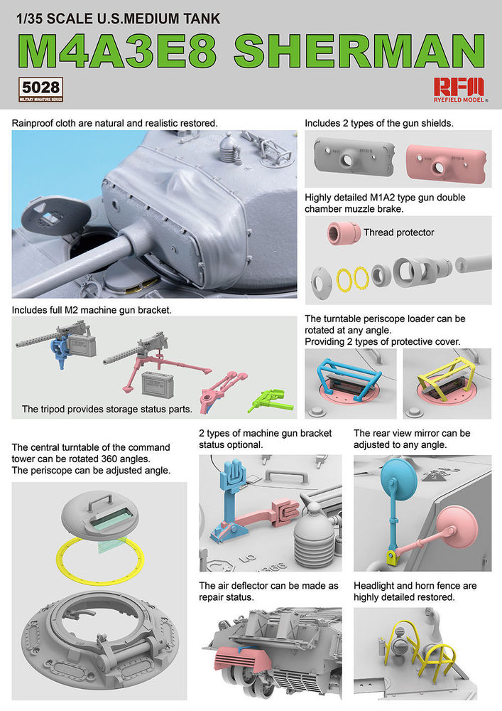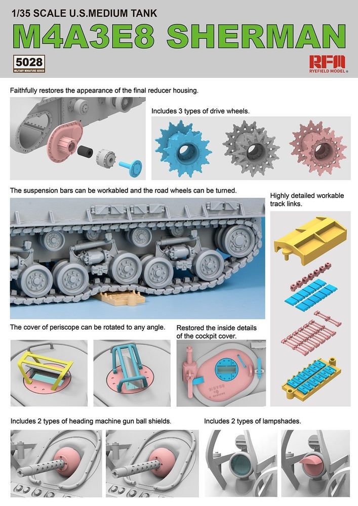 SHERMAN M4A3E8 W/Workable Track linksProductspecificaties