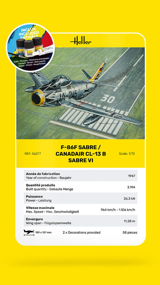 STARTER KIT F-86F Sabre / Canadair CL-13 B Sabre VIProductspecificaties