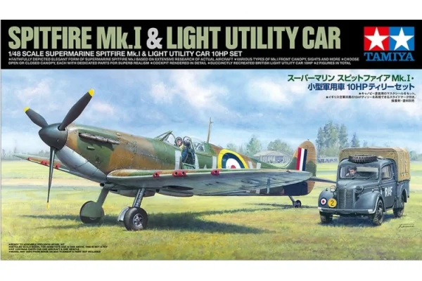 Supermarine Spitfire Mk.I & Light Utility Car 10HP Set 25211. Het iconische Spitfire-gevechtsvliegtuig was een van de ruggengraat van de RAF in de strijd om de luchten tijdens de Tweede Wereldoorlog, met een verfijnd ontwerp en esthetisch aantrekkelijke elliptische vleugels, plus de bewezen Rolls Royce Merlin-motor. Het maakte zijn eerste vlucht in maart 1936, en ongeveer tweeënhalf jaar later in augustus 1938 begonnen de eerste productie-Spitfires - de Mk.I - bij eenheden aan te komen. Deze Mk.I zou een cruciale rol spelen in de Slag om Groot-Brittannië, terwijl de RAF en de Luftwaffe een titanenstrijd uitvochten voor de heerschappij in de lucht. Het succesvol afslaan van de Luftwaffe zorgde ervoor dat de Spitfire internationale faam verwierf die zelfs tot op de dag van vandaag voortduurt.