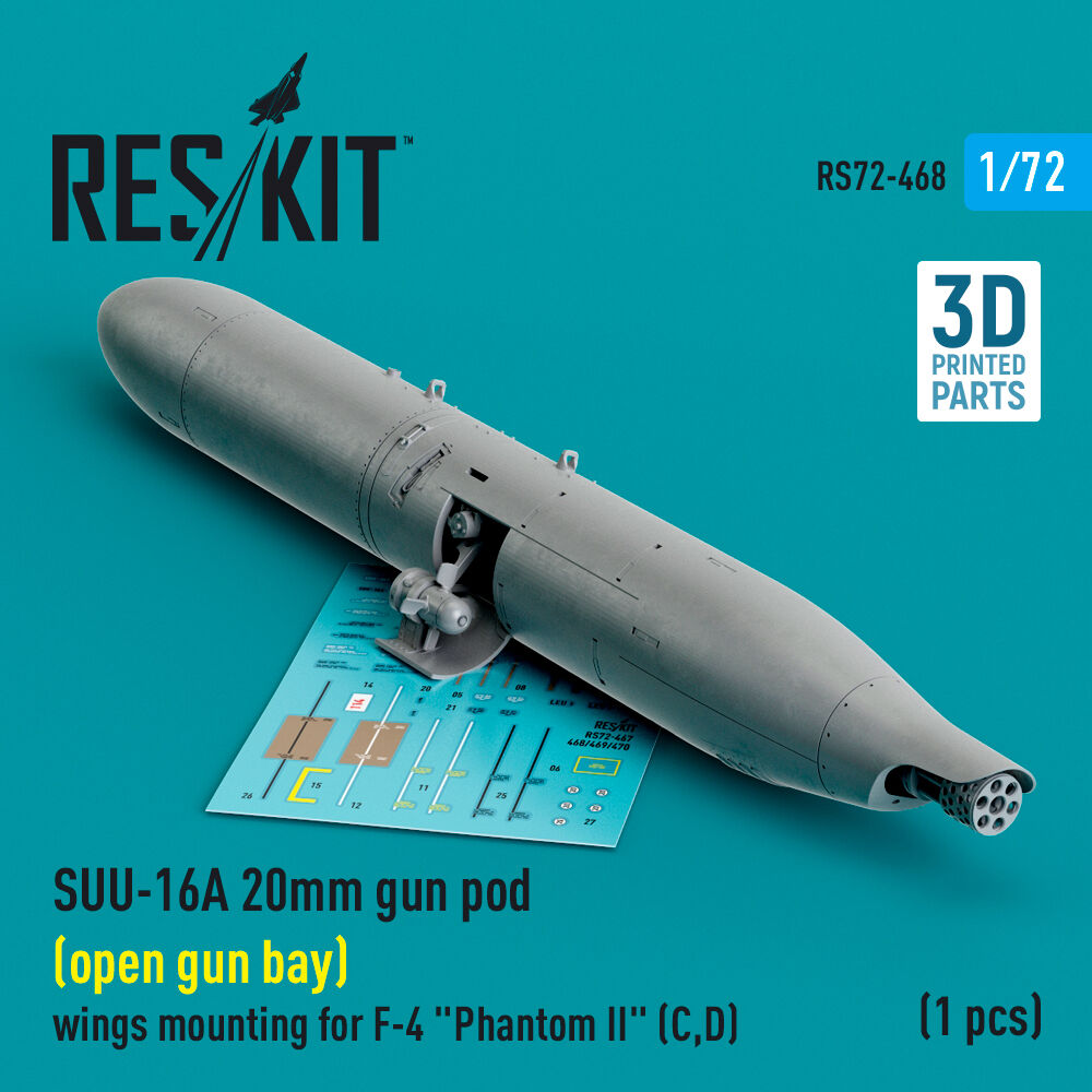 SUU-16A 20mm gun pod (open gun bay) wings mounting for F-4 Phantom II (C,D) (1 pcs) (3D Printed)Productspecificaties