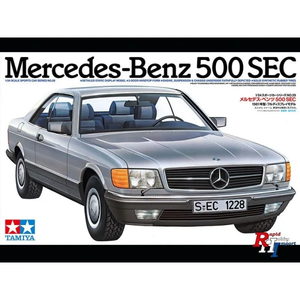amiya presenteert een geüpdatete heruitgave van artikel 24029 – 1/24 Mercedes-Benz 500 SEC (oorspronkelijk uitgebracht in 1982), met vernieuwde decals, handleiding en verpakking.