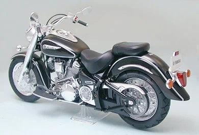 Het eerste wat opvalt aan de XV1600 RoadStar is zijn imposante, lange en lage silhouet, perfect weergegeven in deze schaalversie. Van de gestroomlijnde spatborden tot het sierlijke zadel en het brede stuur: elk detail is natuurgetrouw gemodelleerd voor een indrukwekkende uitstraling. De verchroomde uitlaten, motorbehuizing en spatbordranden geven het model een luxe uitstraling.