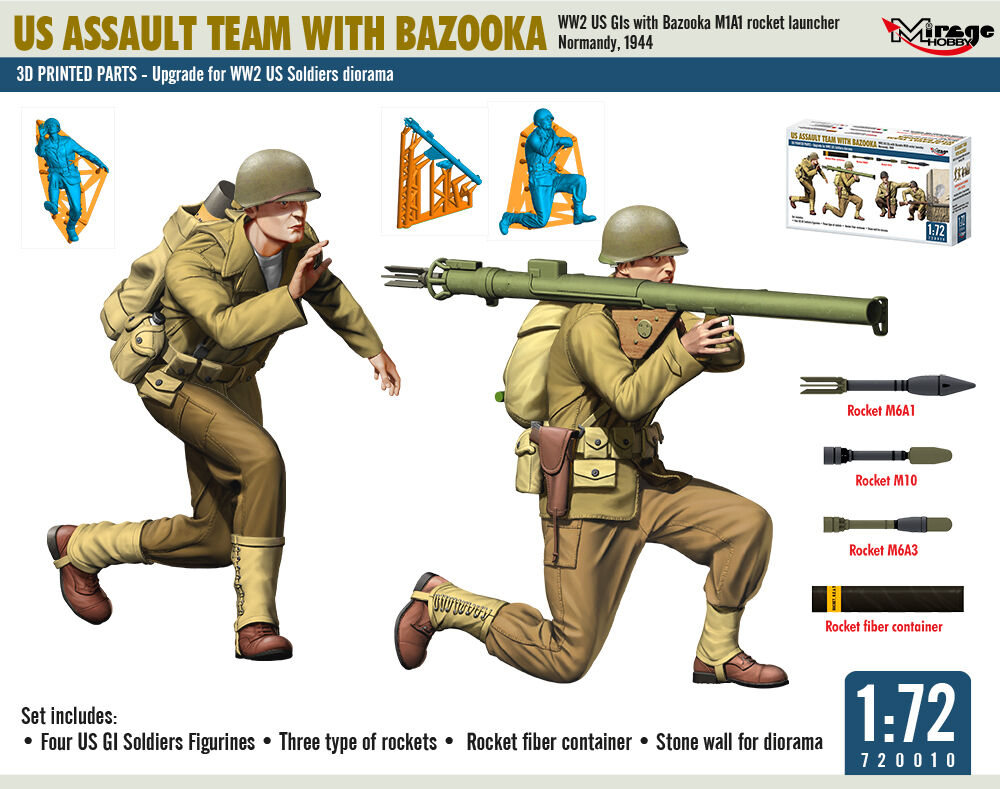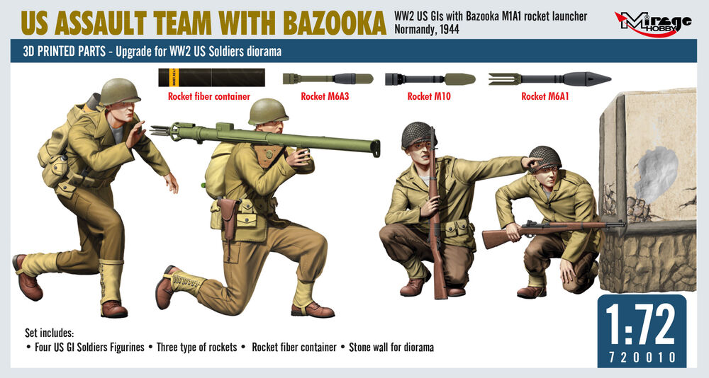 US ASSAULT TEAM WITH BAZOOKA, WW2 US GIs with Bazooka M1A1 rocket launcher Normandy, 1944Productspecificaties