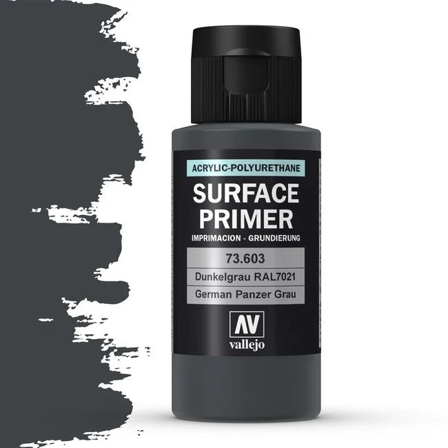 Vallejo Surface Primer Panzer Grey 60 ml is een professionele grijze grondverf op polyurethaan waterbasis, perfect afgestemd op de behoeften van modelbouwers. Deze hoogwaardige primer is ontworpen om een egale, matte basislaag te creëren op ondergronden van plastic, resin en metaal. Dankzij de zelfnivellerende eigenschappen droogt de primer strak en hard op, zonder details van het model te verliezen.