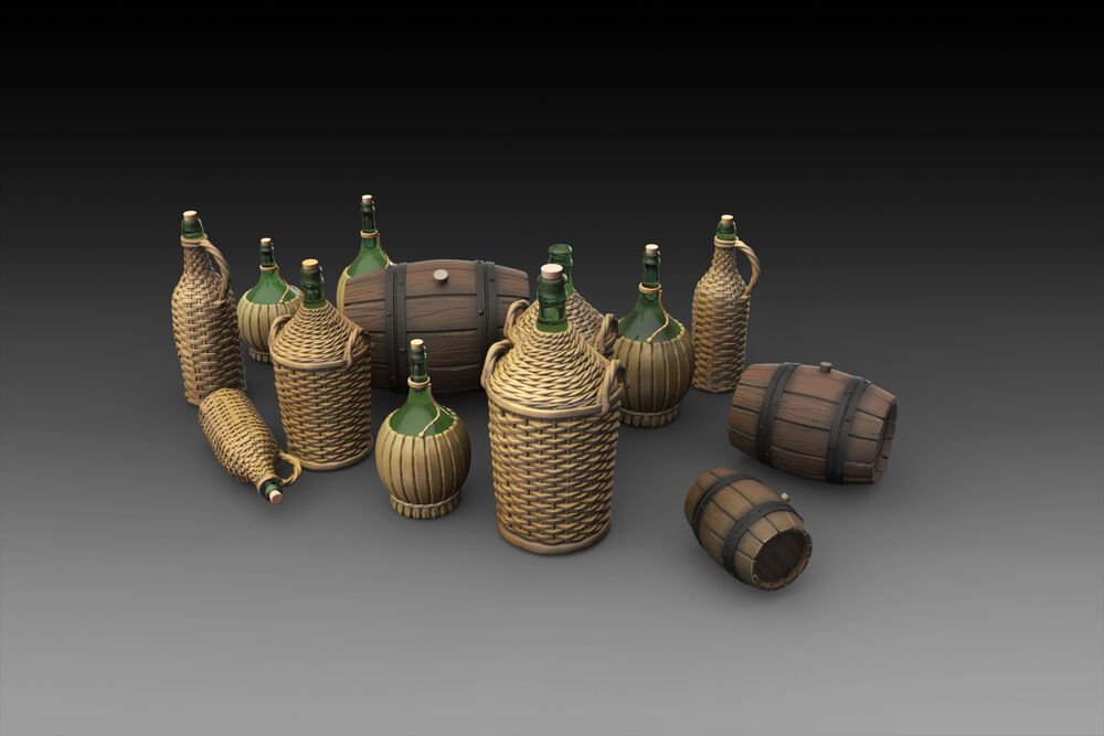 Wicker Bottles Demijohn Glass and small barrelsProductspecificaties