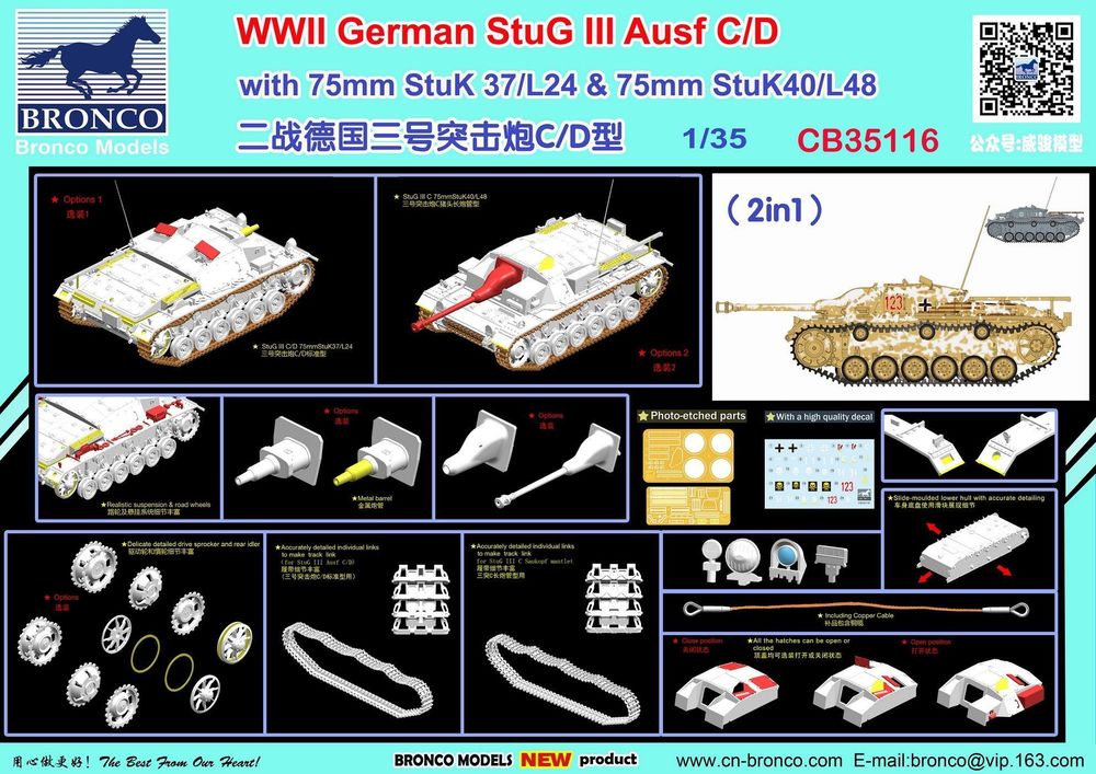 WWII German StuG III Ausf C/D with 75mm StuK 37/L24&75mm StuK40/L48(2in1)Productspecificaties